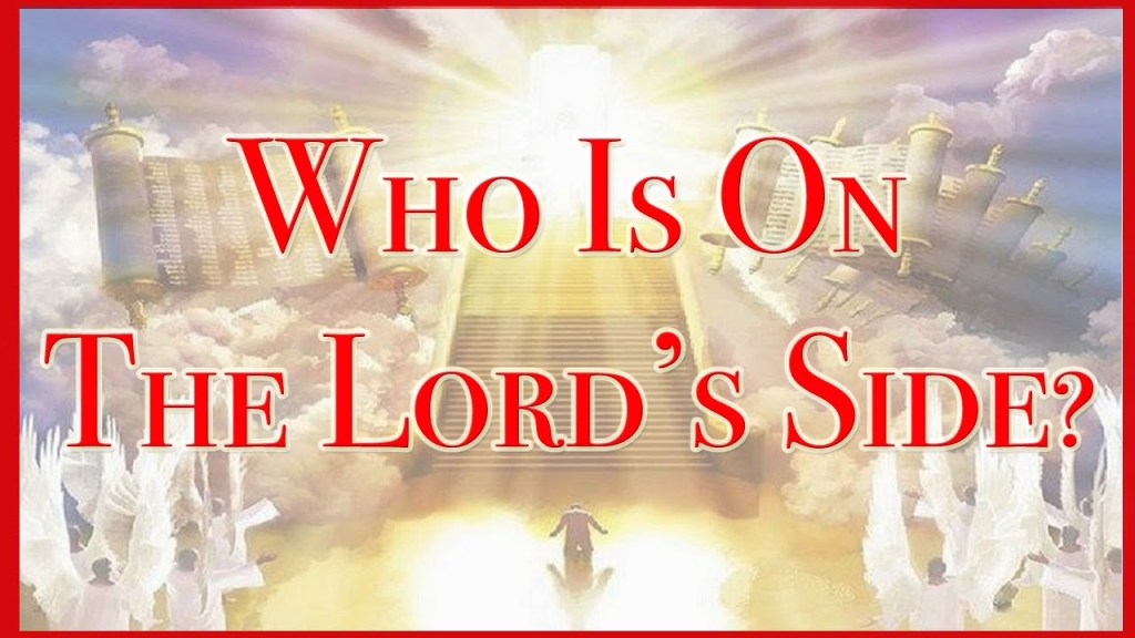 Are you on The Lord’s side? Do you seek after Him? Do you do the things that he delights in? Do you do His commandments? Do you give to the poor? Do you feed the hungry? Do you cloth the naked? Do you visit the sick? Do you visit those in prison? Do you give to Israel? Do you give to the sojourner? Do you give to the Alien? Do you give to the fatherless? Do you give to the orphans? Do you give to the widow? Do you spread His word? Do you cast away the things of this world? Do you love His Son? Do you have fruit? Do you pray? Do you give thanks? Do you serve God? Are you living up to your calling? Have you done all that you can do to stand? Whose on THE LORD’S SIDE!